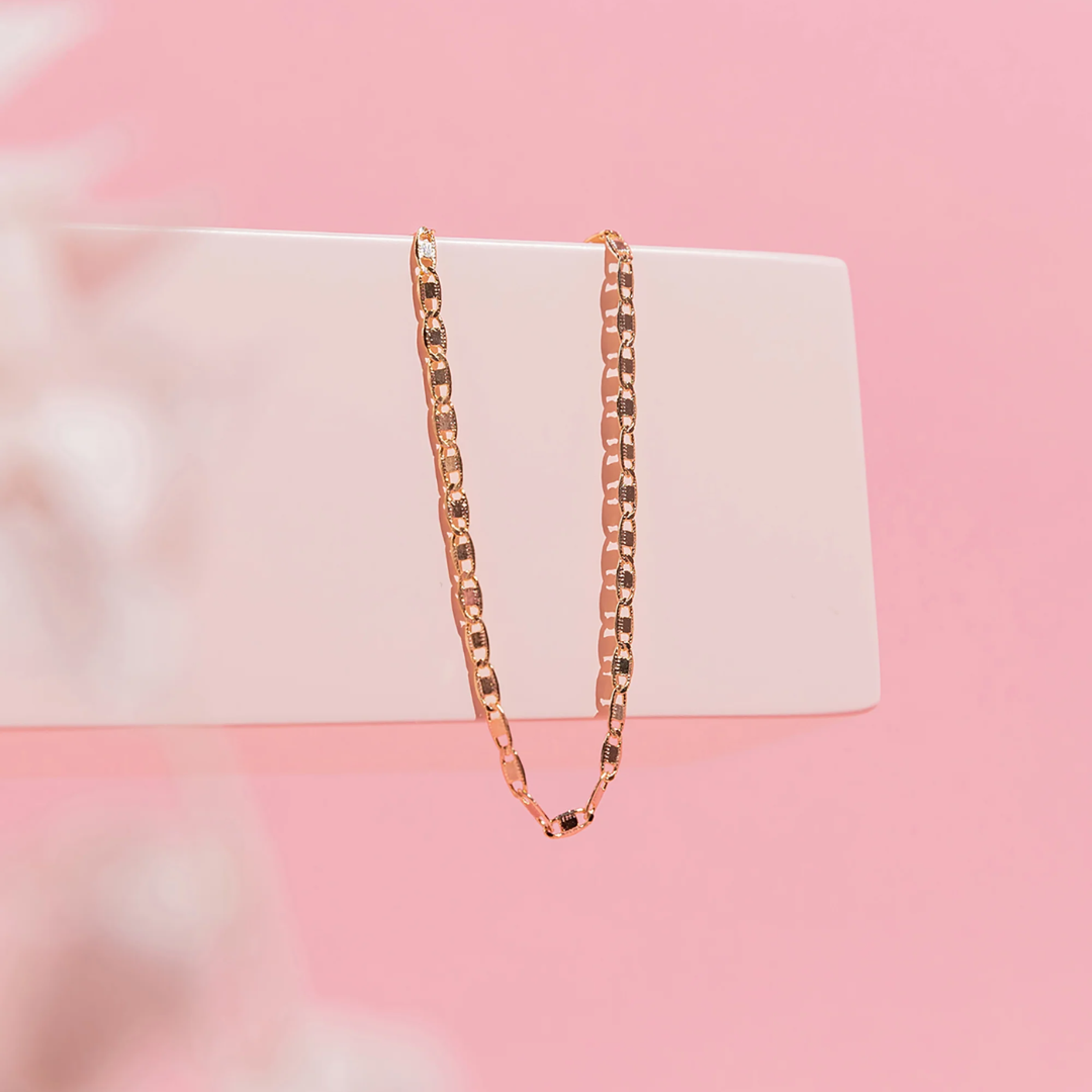Add a touch of charm to your everyday style with the Marina Linked Chain Anklet. Its delicate flat linked chain design brings a subtle sparkle to your ankle, perfect for layering or wearing solo. Lightweight and versatile, this anklet effortlessly complements any outfit with a playful, elegant vibe.
