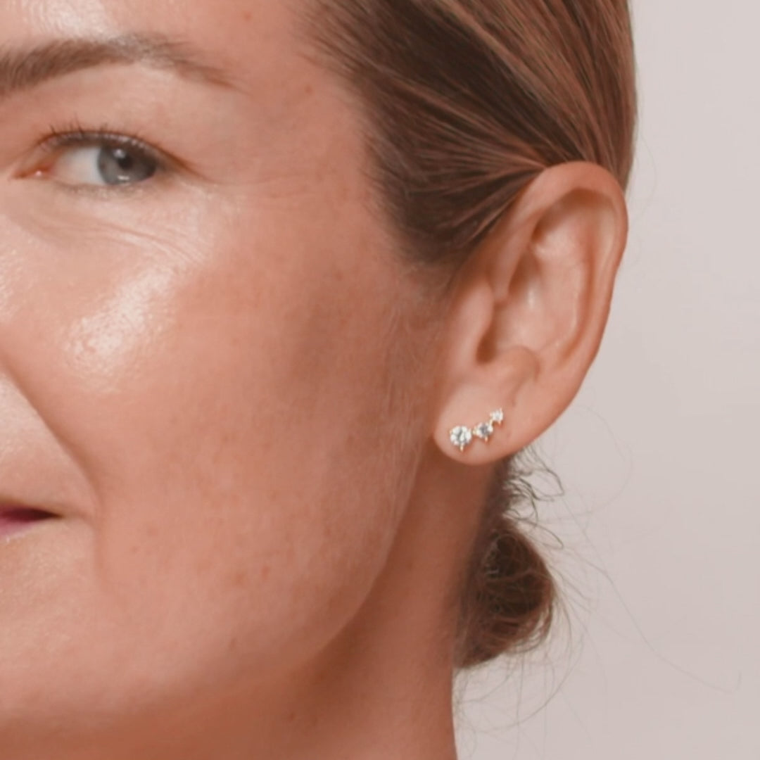 These Constellation Studs capture the serene beauty of a clear summer night sky. Featuring sparkling cubic zirconia that gracefully climb the ear, they add a refined touch of elegance and sparkle. Perfect for elevating your look with subtle sophistication, these earrings inspire a sense of optimism and timeless charm.