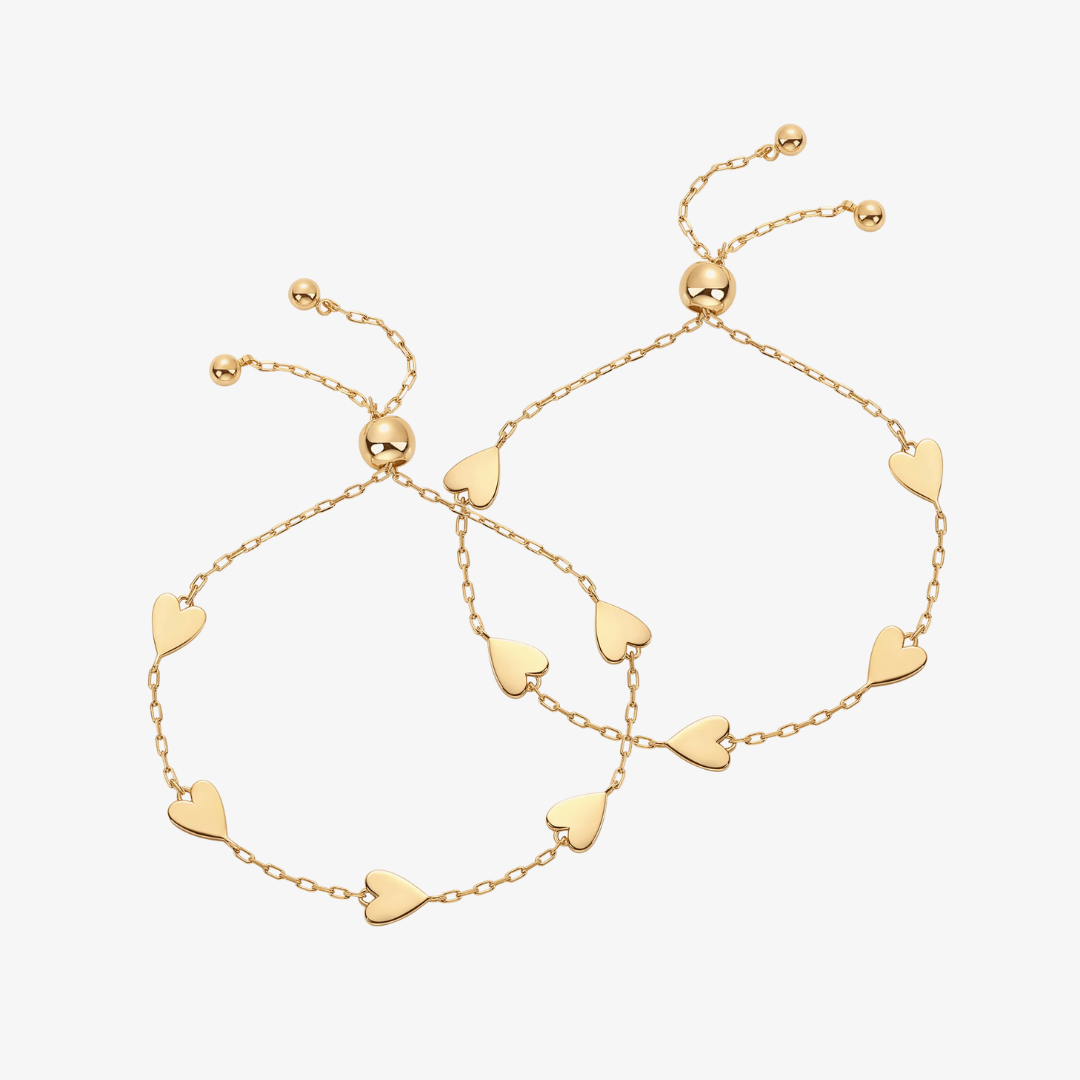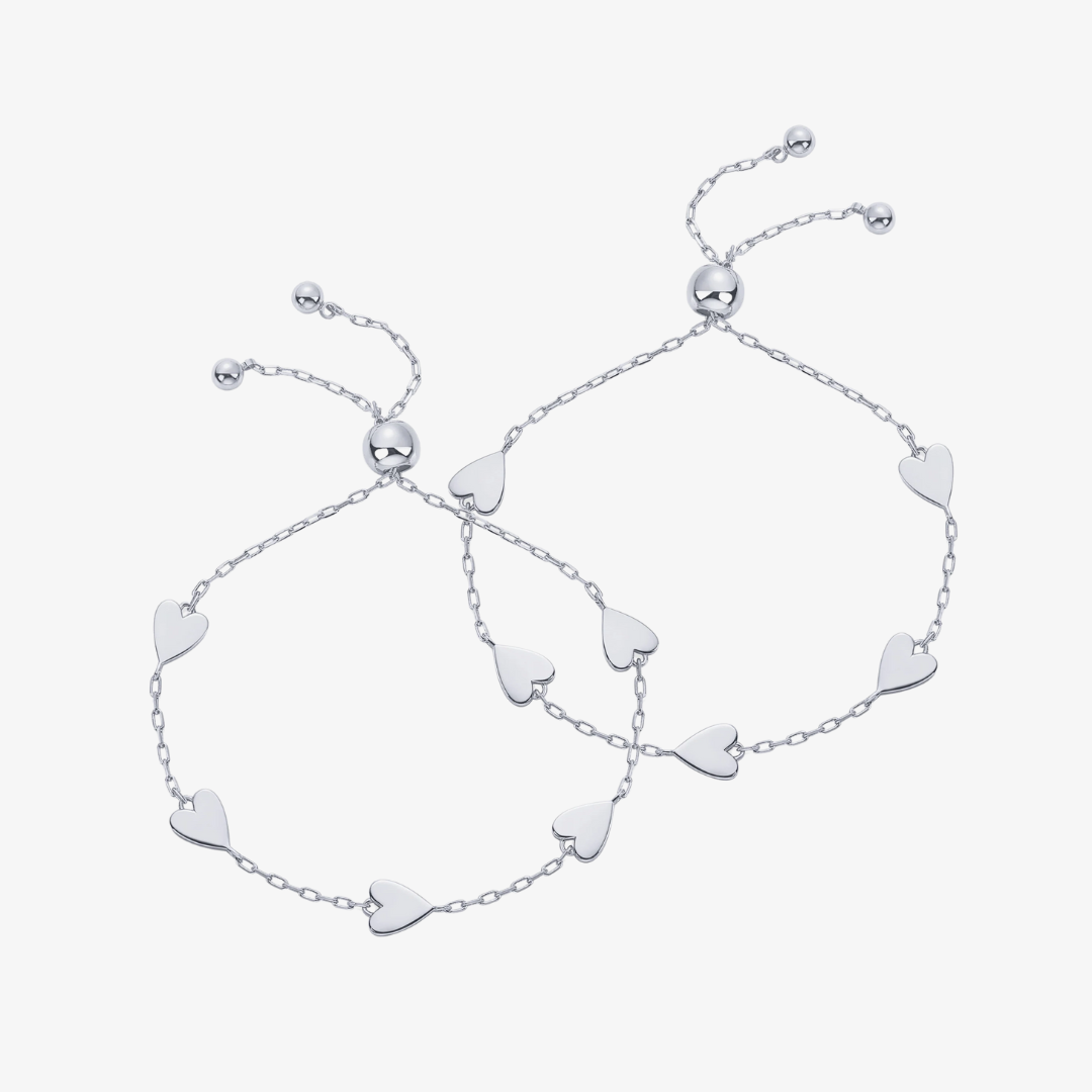 Enhance your elegance with our matching Infinity Hearts Duo Bracelet. This refined pairing showcases two bracelets adorned with exquisite filled heart pendants. The adjustable length offers versatility—wear them individually or bestow one upon someone special. An ideal accessory to infuse your ensemble with subtle romance and polished charm. This is the perfect matching friendship bracelet duo.