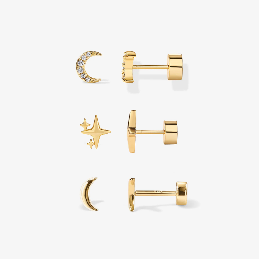 • Cosmic Set: Cosmic Moon Flat Back Studs, Starry Night Flat Back Studs, Tiny Moon Flat Back Studs