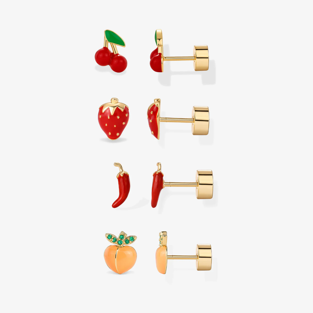 • Fruits & Spice Set: Cherry Flat Back Studs, Strawberry Flat Back Studs, Chili Pepper Flat Back Studs & Peach Flat Back Studs