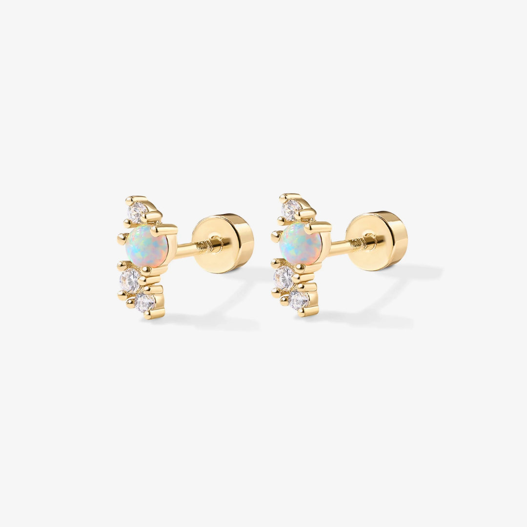 Experience elevated elegance with our Opal Screw Flat Back Studs. These essential earrings bring a subtle touch of refinement to any outfit, whether for daytime or evening wear. Whether worn solo or paired with other earrings, their captivating opal studs will leave you in awe. Indulge in sophistication with our exclusive and intricate design.