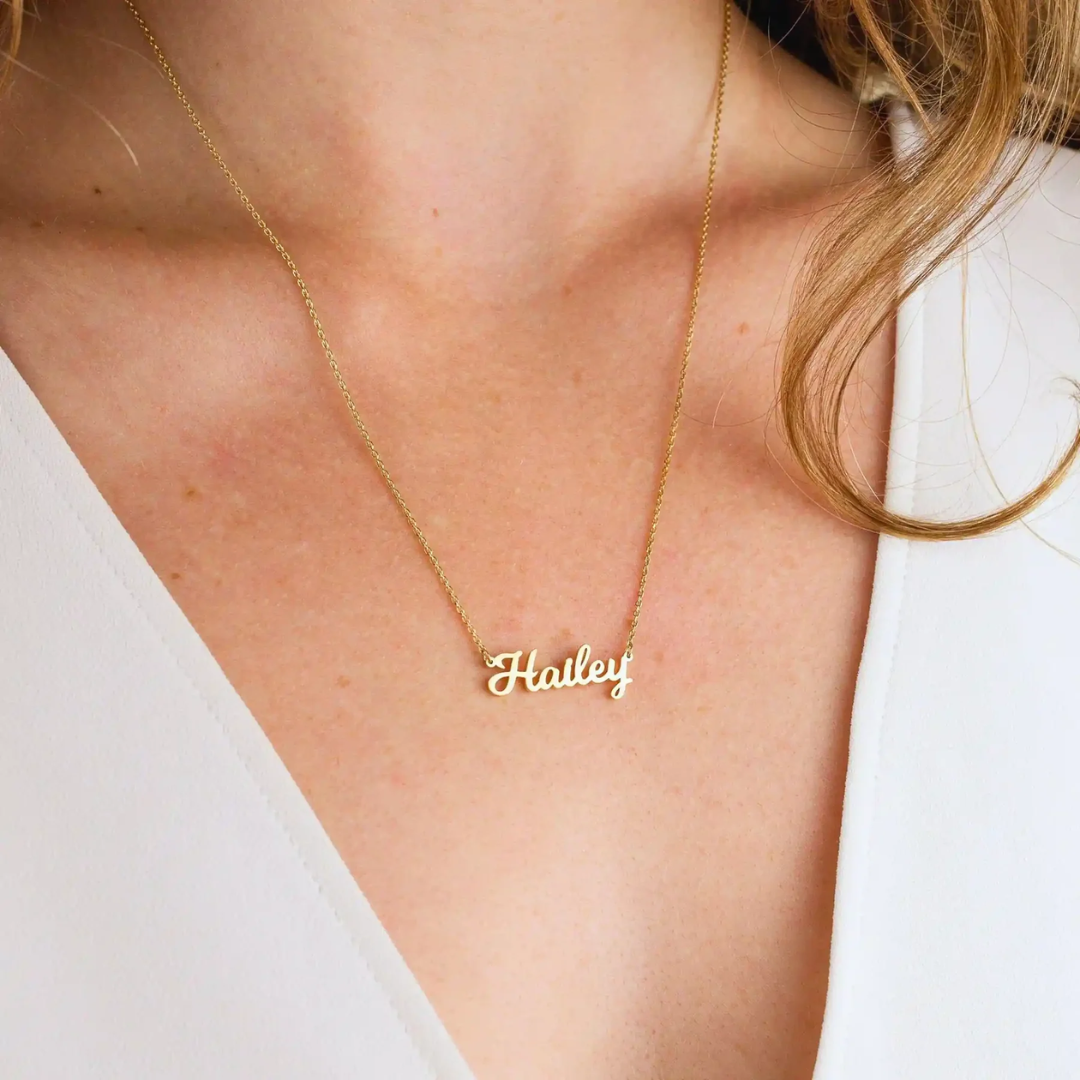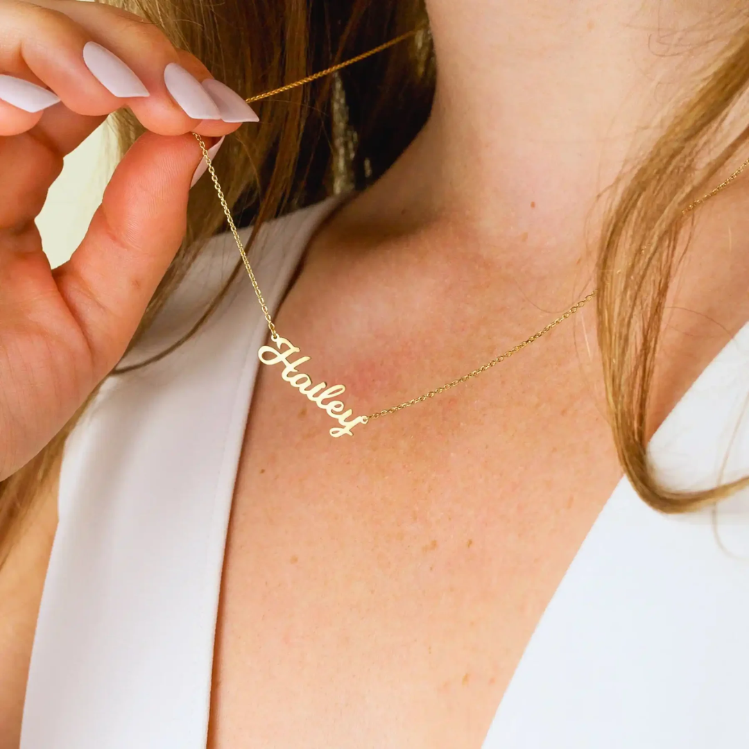 Craft a timeless statement with this elegant custom name necklace, designed to showcase your unique identity or to offer a meaningful, personalized gift. Expertly crafted for subtle sophistication, it complements any ensemble while carrying a personal touch that endures. Perfect for celebrating special moments or enhancing everyday style.