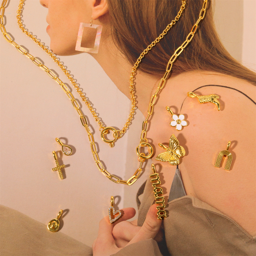 Our jewelry is made from high-quality stainless steel and finished with a luxurious layer of 14k or 18k gold or silver. This durable material resists tarnishing and fading, offering greater longevity than traditional gold, silver, or even platinum. It won’t discolor your skin and retains its brilliant shine over time.