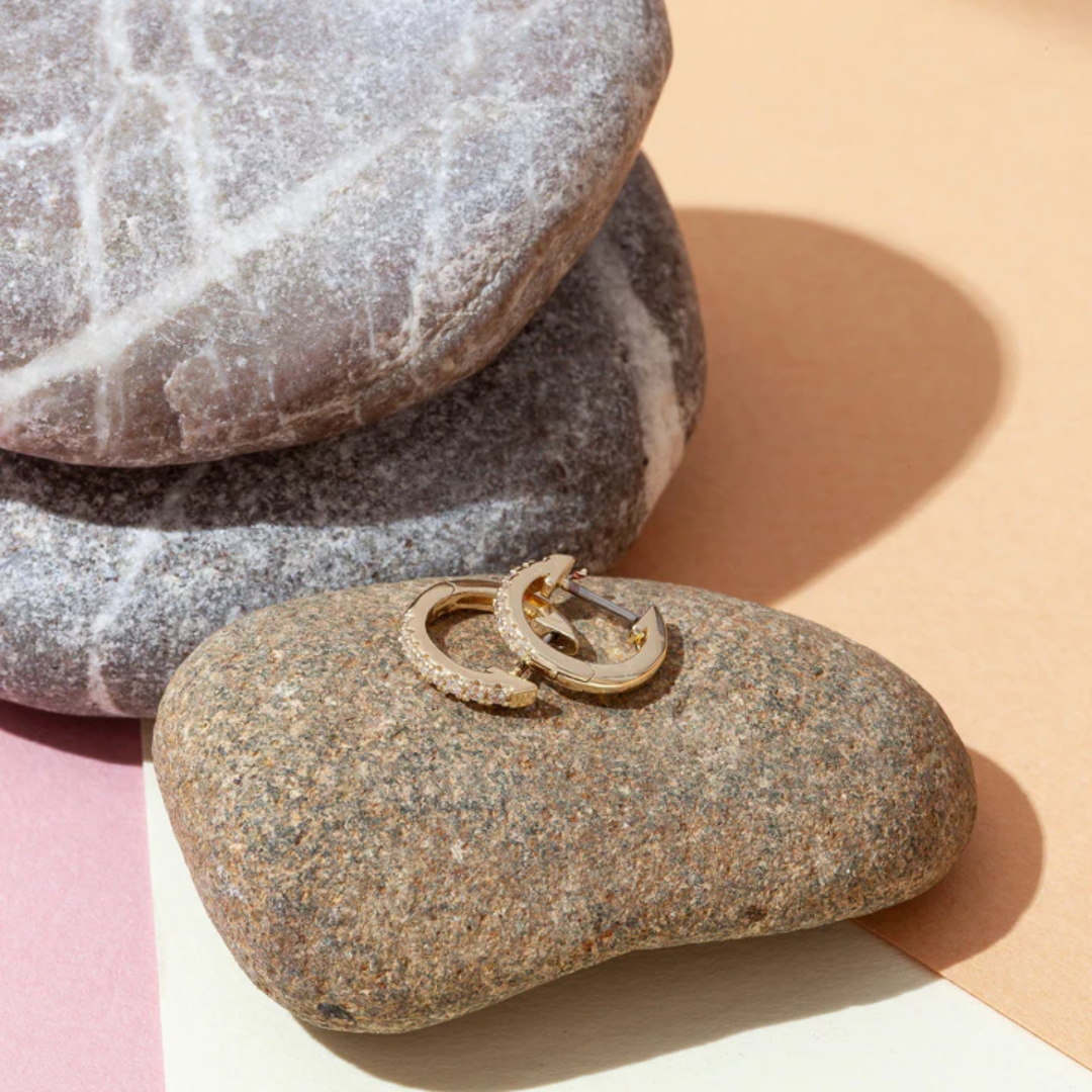 Experience the ultimate huggie earring - Classic Cubic Zirconia Huggies Huggies! Delicate, stylish, and dazzling, they fulfill all your earring desires. Wear them solo or stacked for a stunning look that compliments any earring combination.
