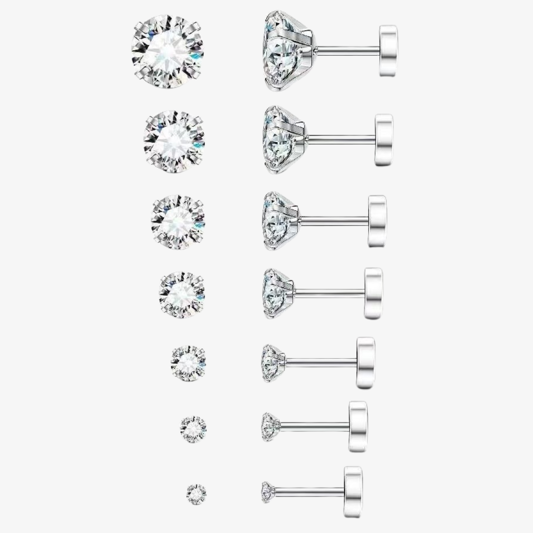 Cubic Zirconia 7 Pair Flat Back Studs Set