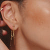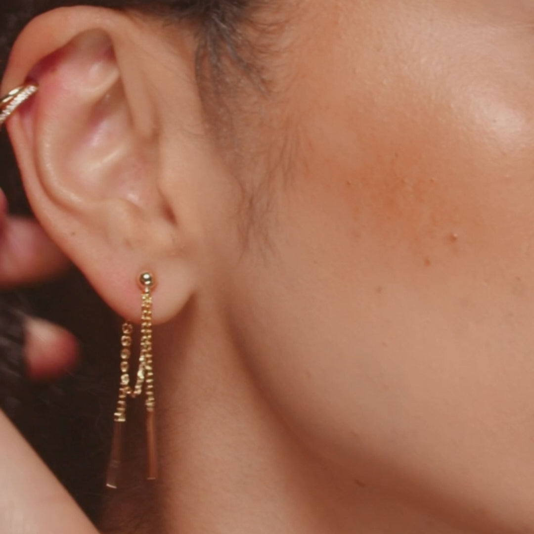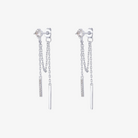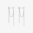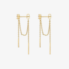 Defy conventional elegance with our Mini Cubic Zirconia Chained Bar Earrings. These rebellious 18k gold-plated stunners showcase a fearless 4mm cubic zirconia that refuses to be overlooked. The provocative combination of a bold back chain and its daring front counterpart creates an unapologetically eye-catching statement. Not for the timid—these earrings are for those who dare to stand out in any crowd.