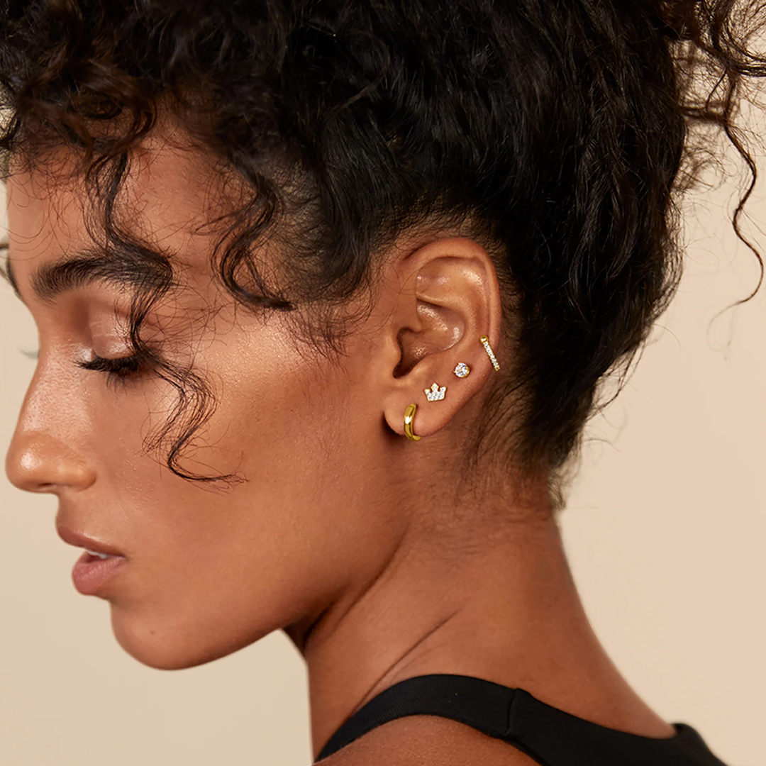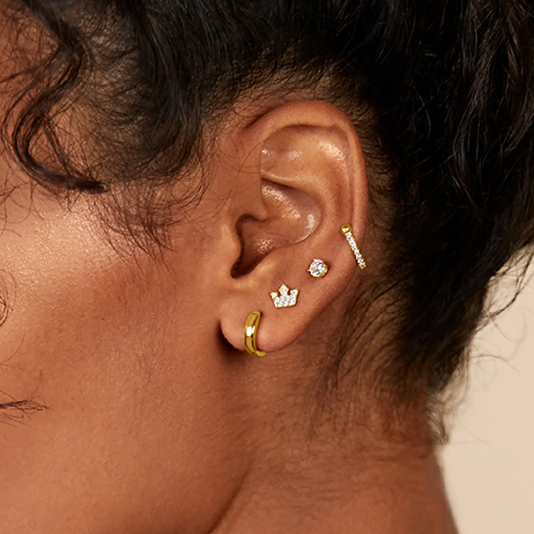 Elevate your everyday elegance with the Tiny Crown Flat Back Studs. Designed for comfort and style, these screw back earrings offer a secure fit that lets you shine day and night. Their delicate crown design adds a refined touch, perfect for wearing alone or layered in a chic earring stack. Experience understated sophistication that complements any look effortlessly.