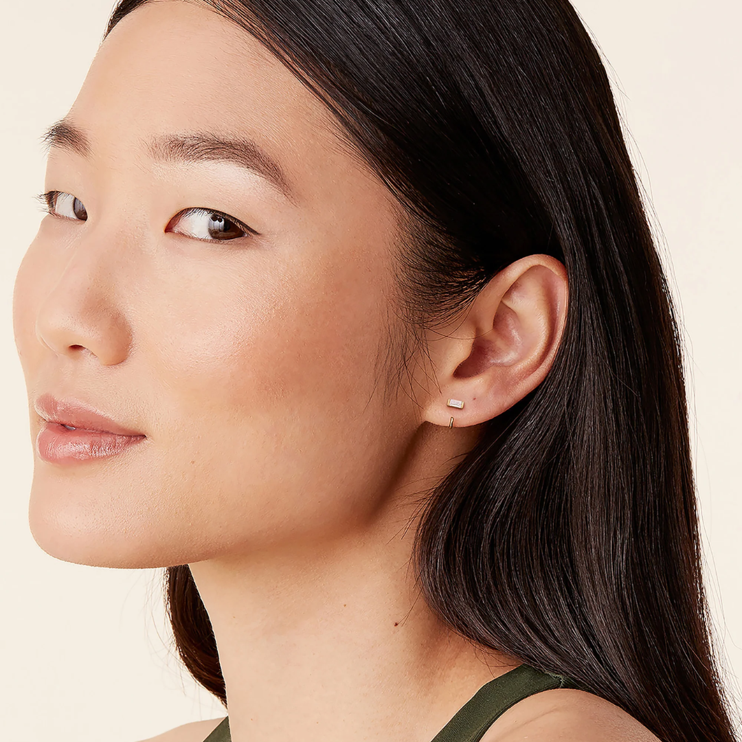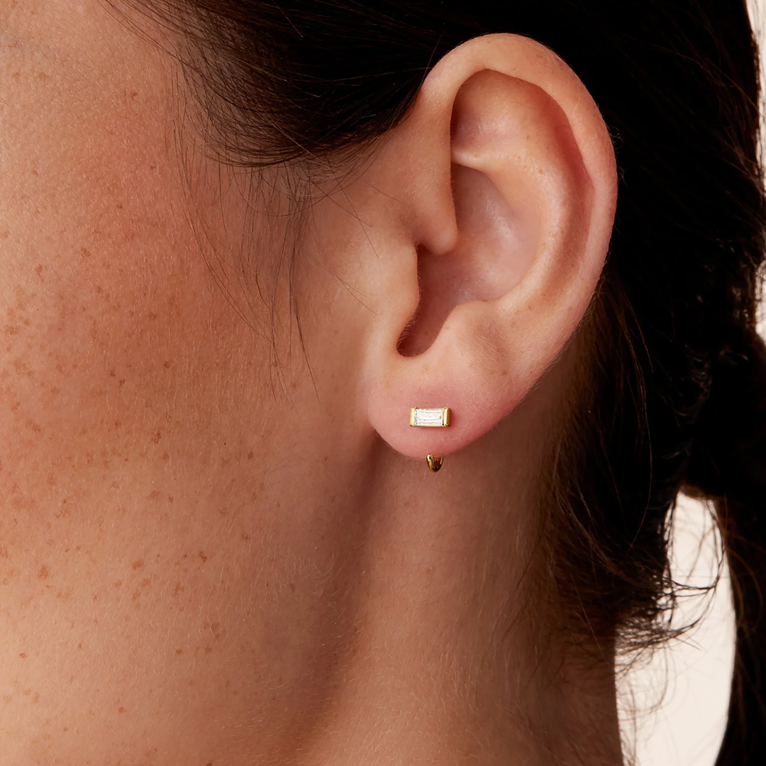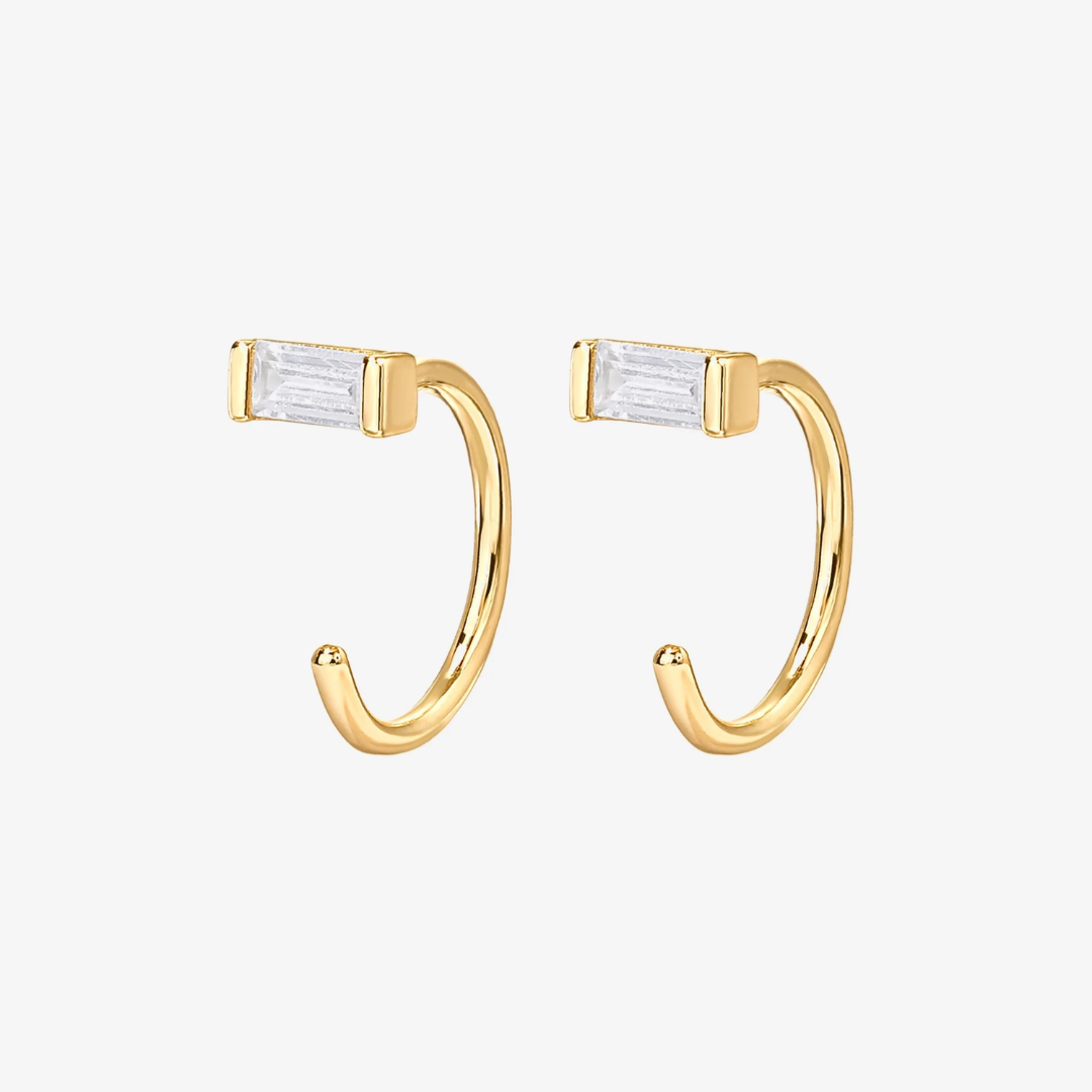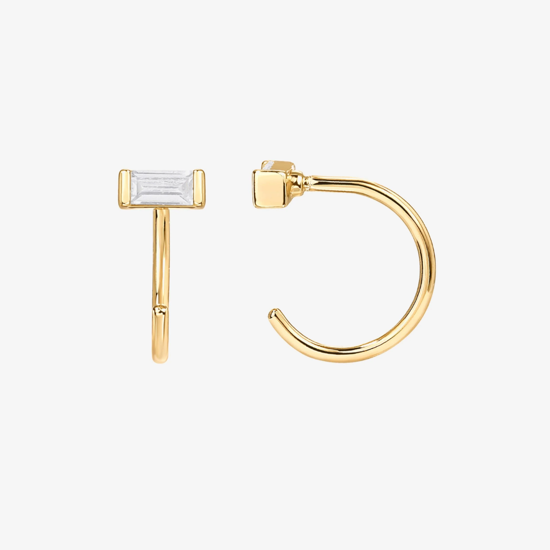 Classic design meets modern style in our baguette half hoop huggies. Perfect to wear for brunches and dinners.