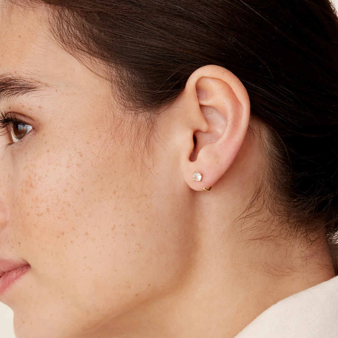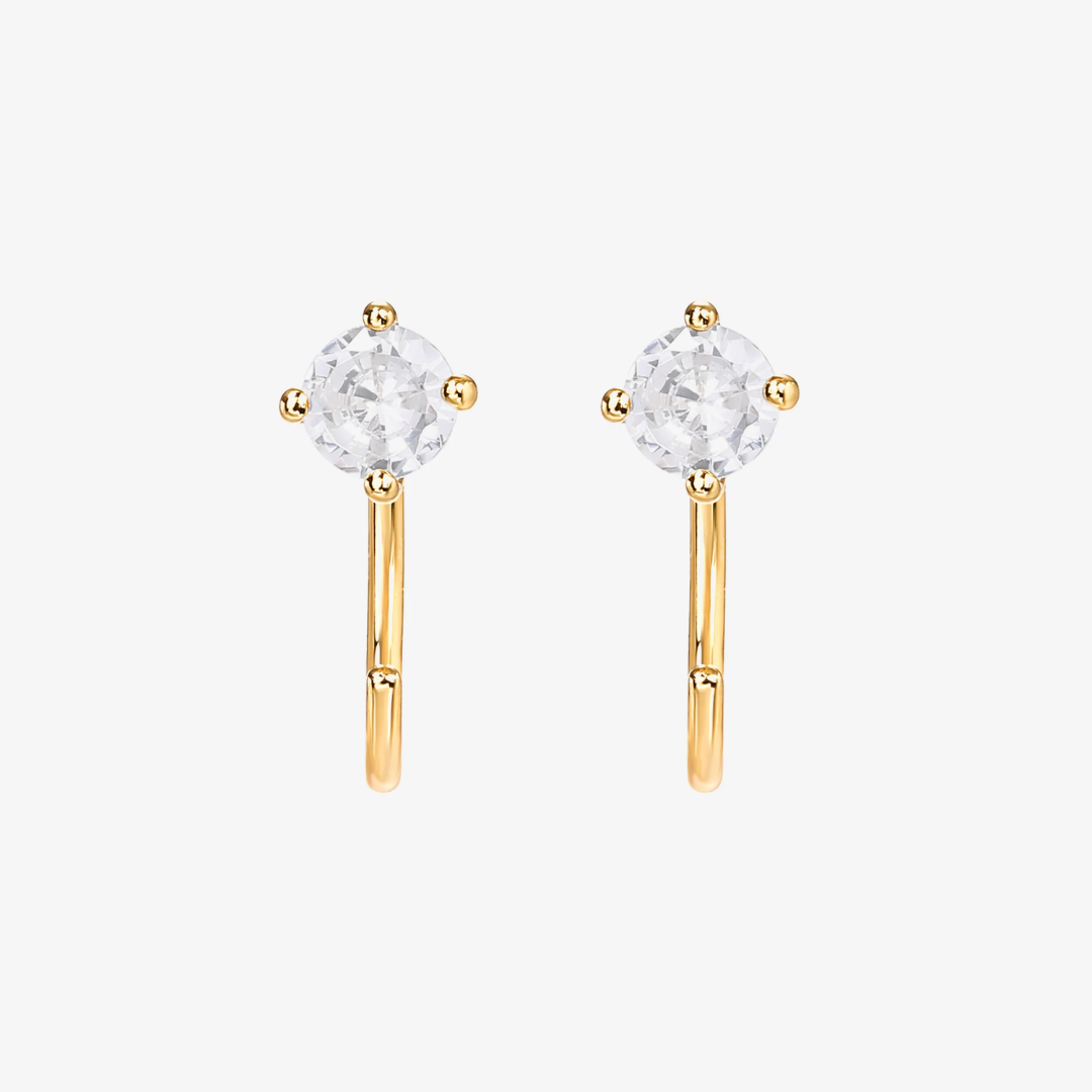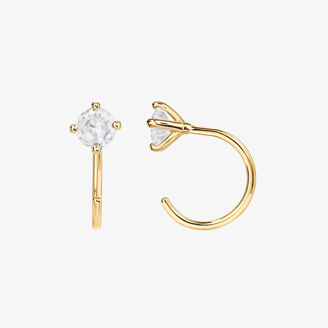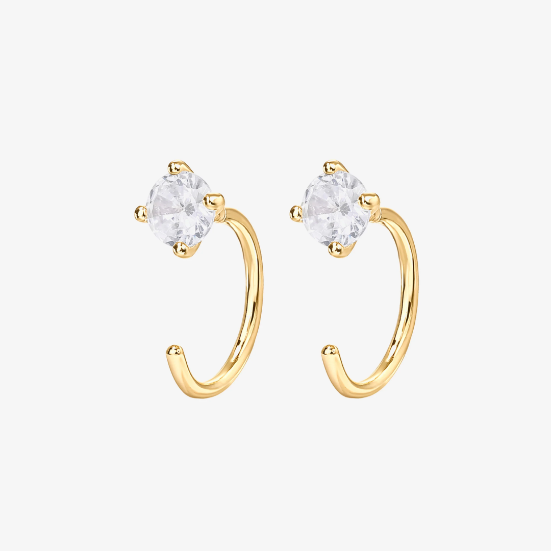 Classic design meets modern style in our Cubic Zirconia Half Hoop Huggies. Perfect to wear for brunches and dinners.