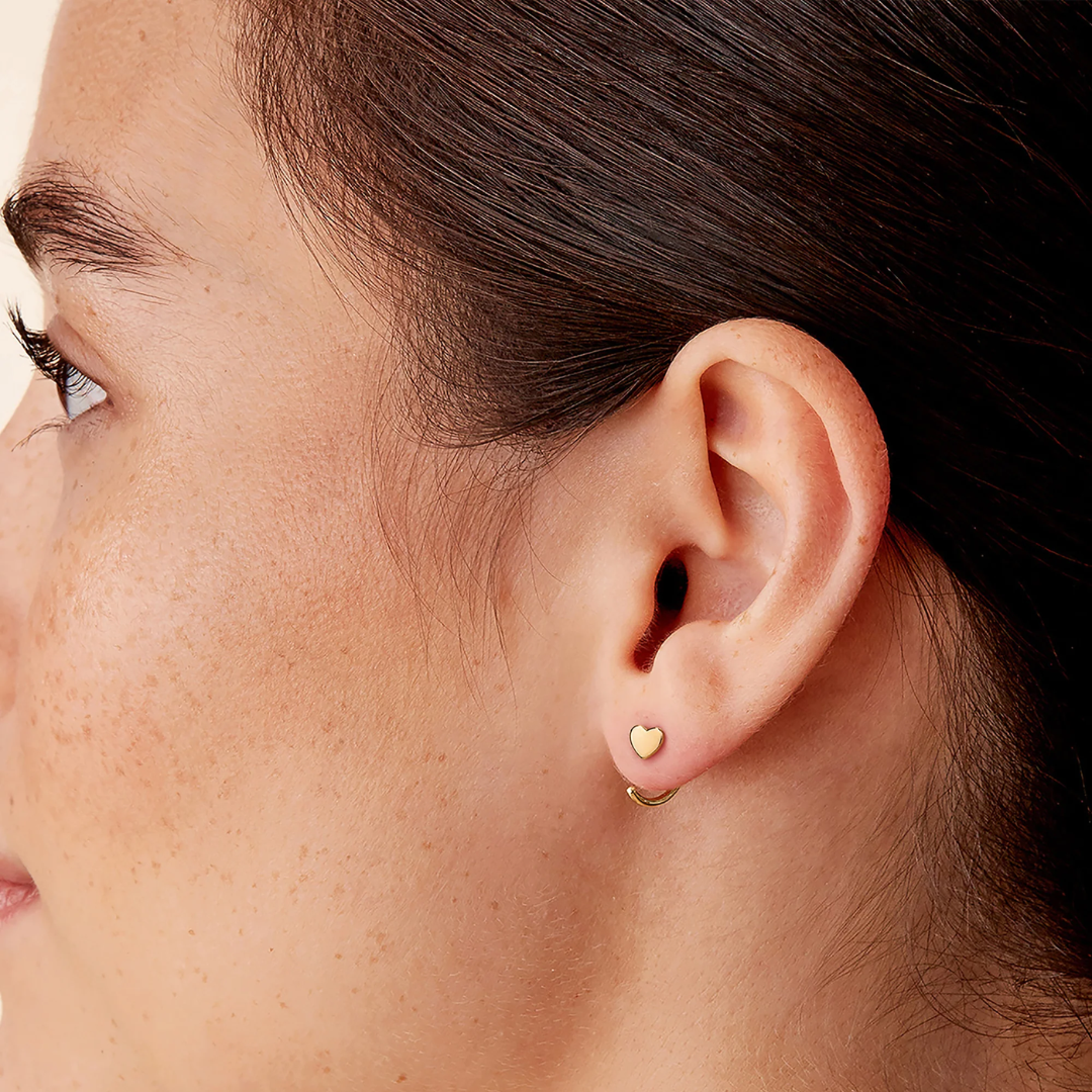 A classic design, wear our heart half-hoop huggie earrings to easily add a dose of sparkle to every OOTD.