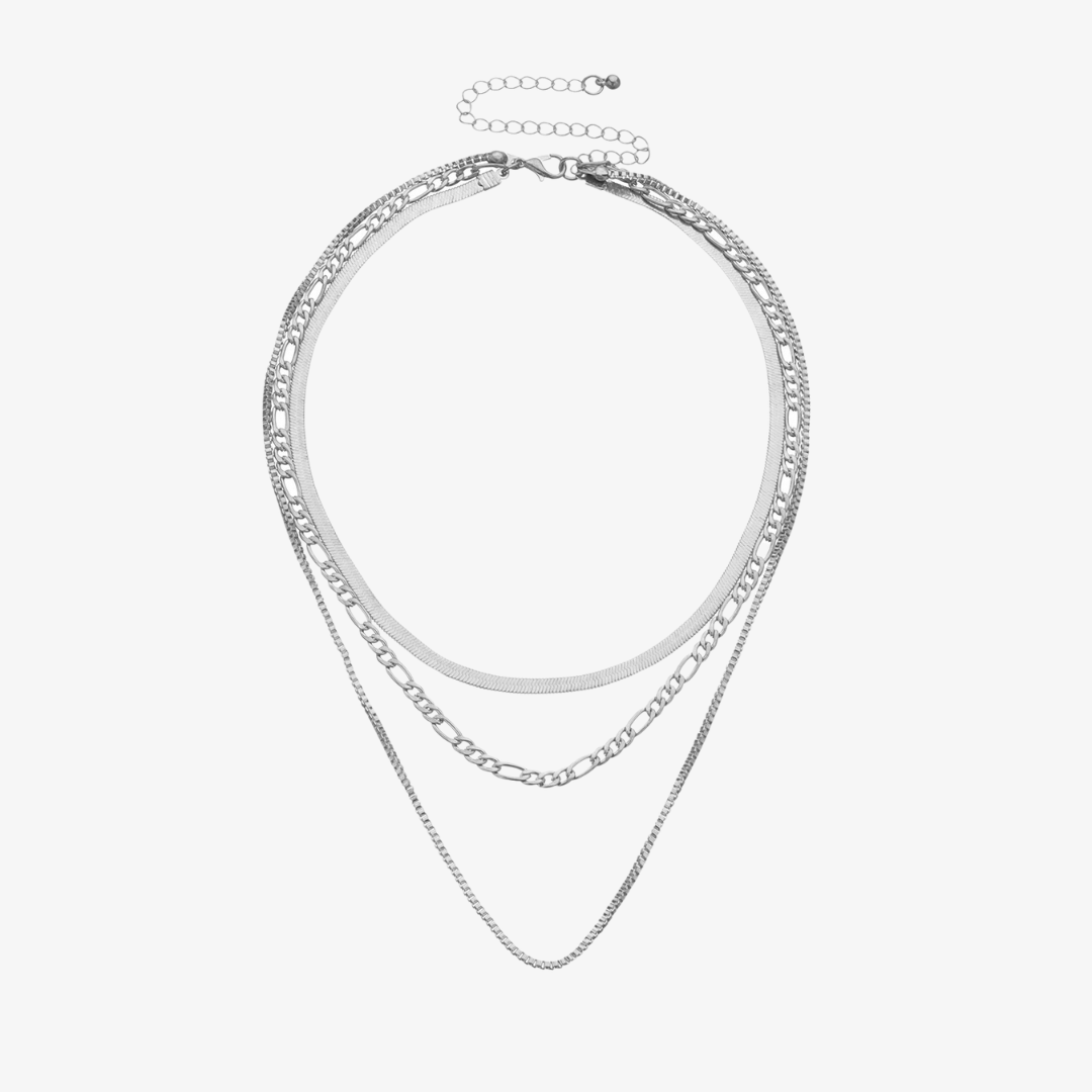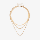 This exquisite necklace features a boho-inspired design with a herringbone, cuban, and chain necklace, creating a luxurious triple-layered effect. Its adjustable feature allows for the perfect fit, making it a must-have for any fashion-forward individual. Elevate your style with this statement piece.