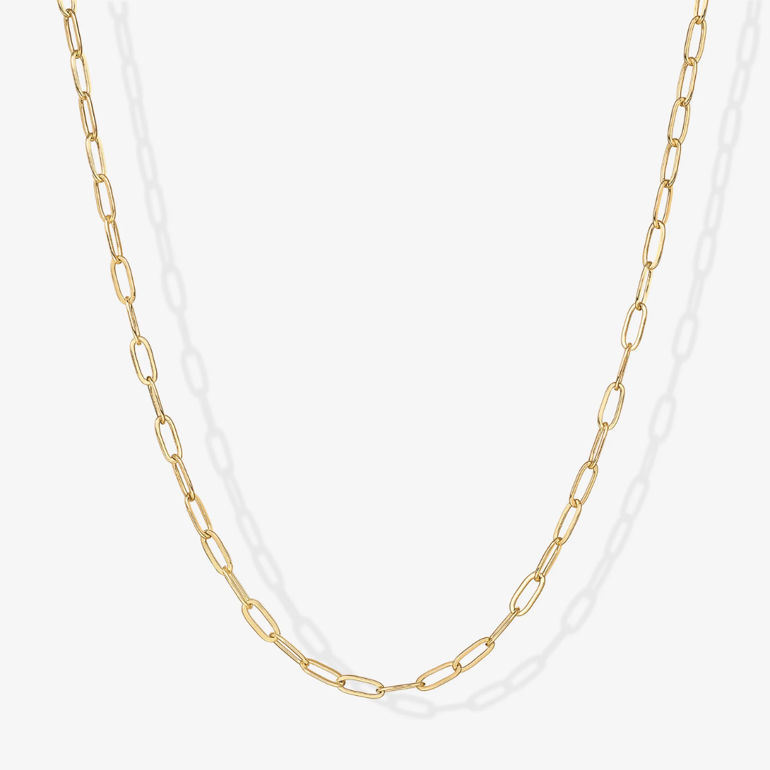 Elevate your everyday style with our sleek and sophisticated paperclip chain necklace. A versatile essential, it effortlessly adds a touch of elegance to any outfit, day or night. Perfect for the modern woman who appreciates both fashion and function.