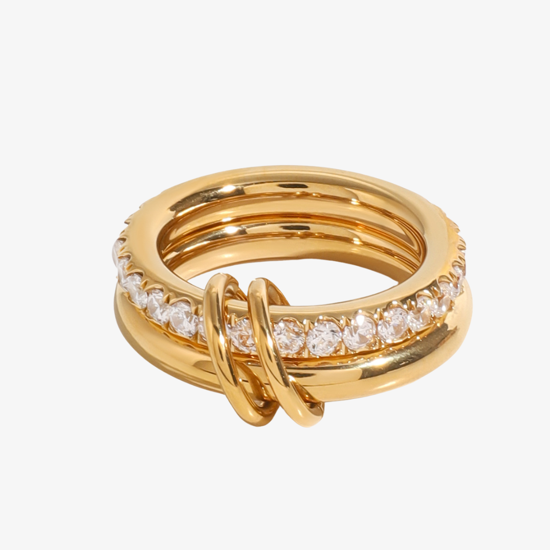 Elevate your elegance with this Interlocked Cubic Zirconia Band Ring, featuring two intricately linked bands adorned with sparkling cubic zirconia stones. This eternity-style ring offers timeless sophistication and a seamless design that symbolizes unity and enduring beauty. Perfect for adding a refined touch to any ensemble.