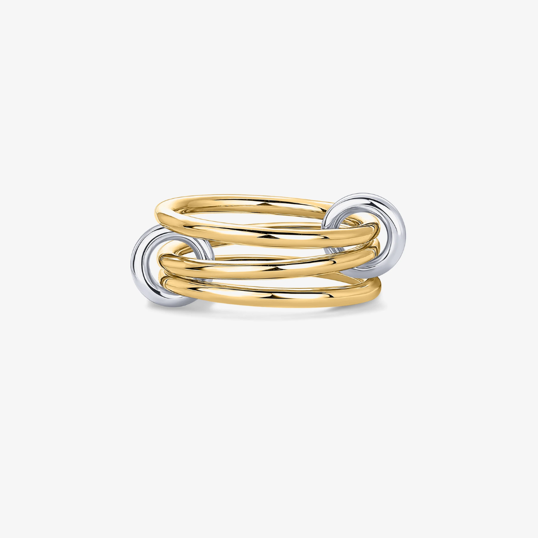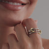 Elevate your accessory collection with these sophisticated interlocked two-toned statement rings. Designed to be effortlessly stackable, this set offers the versatility of wearing all three rings together on one finger for a striking look or mixing and matching to create distinct styles. Crafted with delicate detail, these rings add a refined touch to any outfit while allowing you to express your individual elegance. Enjoy the luxury of three unique pieces for the price of one.
