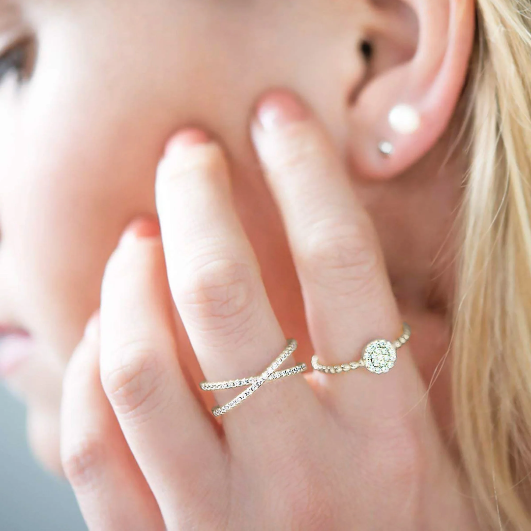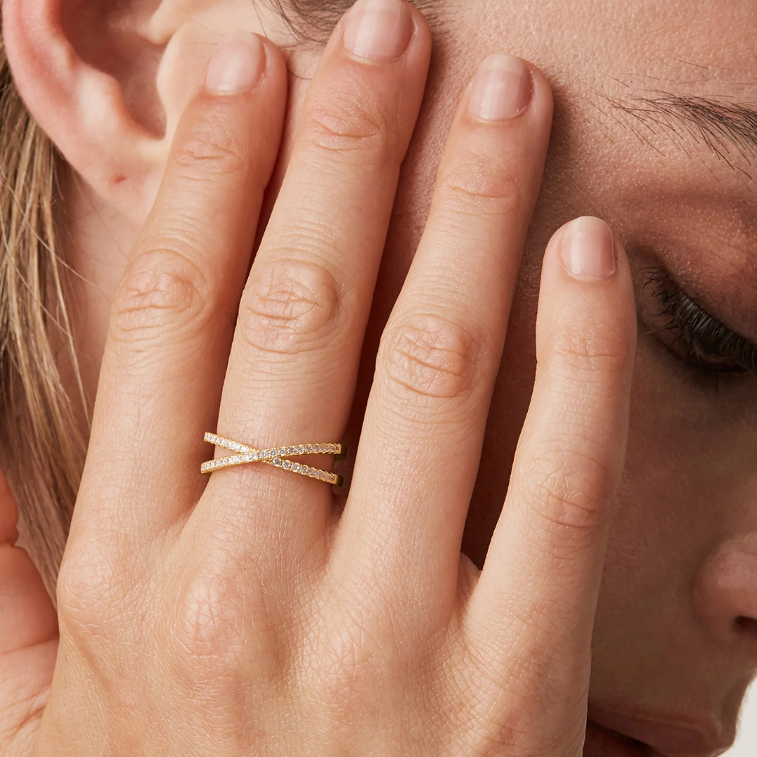 Indulge in the romantic and breathtaking design of the Juliet Ring. The delicate crisscross adds a touch of sophistication to this solo player, perfect for wearing alongside other rings. Elevate your style with this flirty and beautiful piece, exuding elegance and grace.