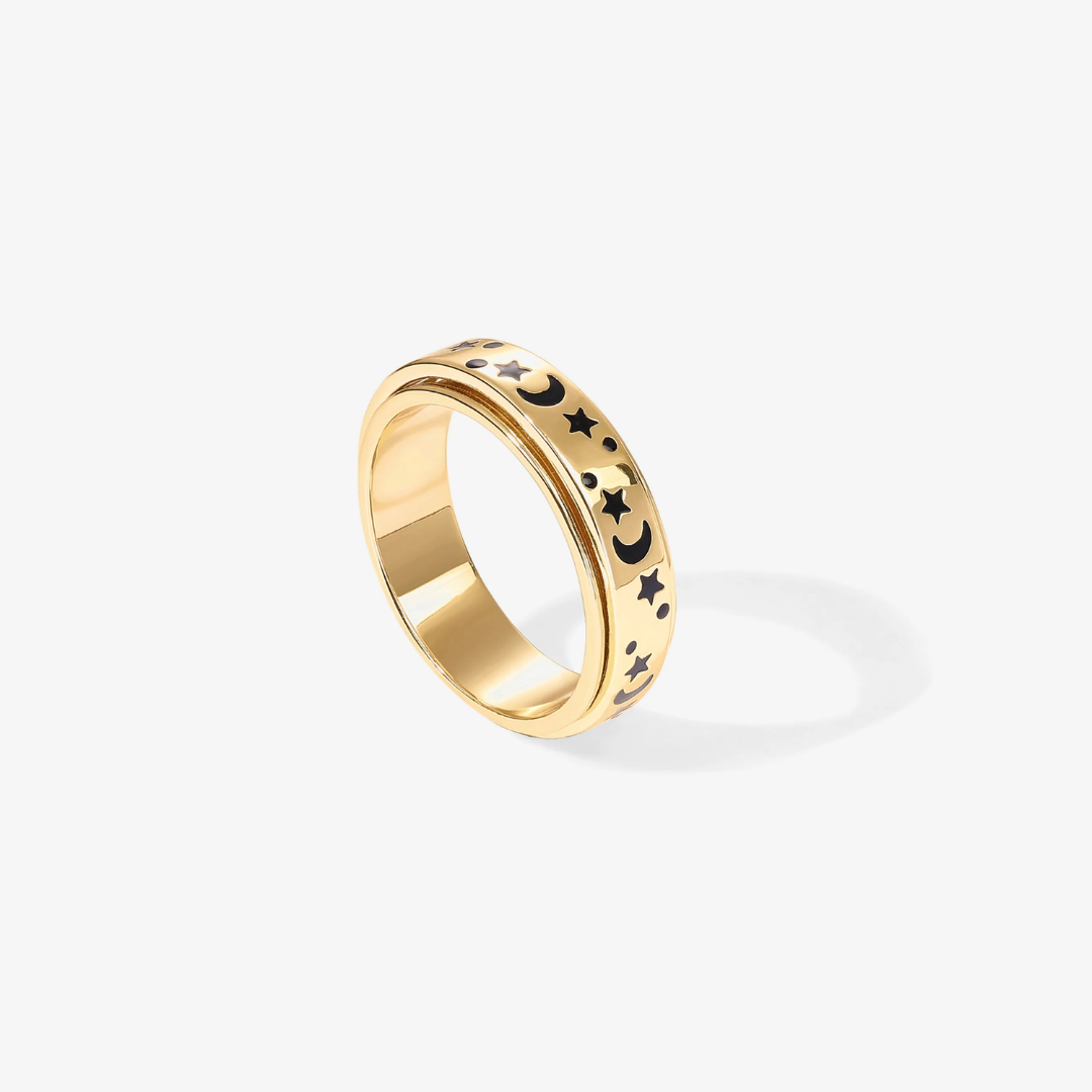 The Starry Night Anxiety Ring features a sleek spinning band designed to help ease anxiety through gentle motion. Its refined design combines functionality with elegance, making it a discreet and stylish accessory for daily wear. Crafted to provide calming relief while complementing your look, this ring offers both comfort and sophistication.