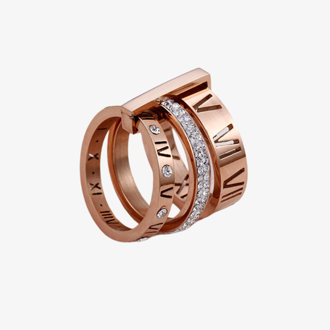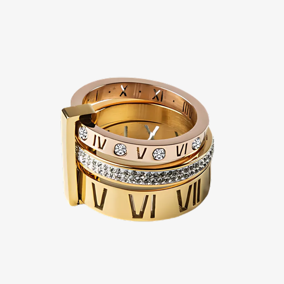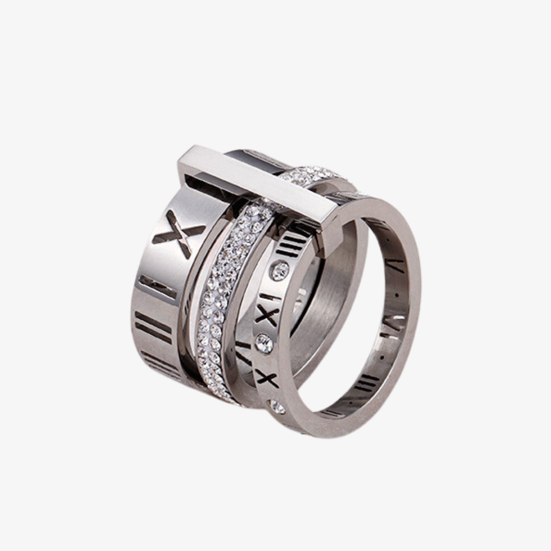 Elevate your style with our Triple Stack Ring. Crafted with metal bands adorned with roman numerals and a cubic zirconia layer, this classic Band Ring adds a touch of sophistication to any outfit. Layer up or wear solo for an exclusive and timeless look.