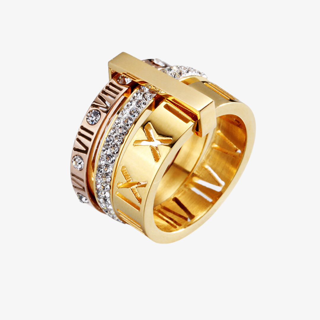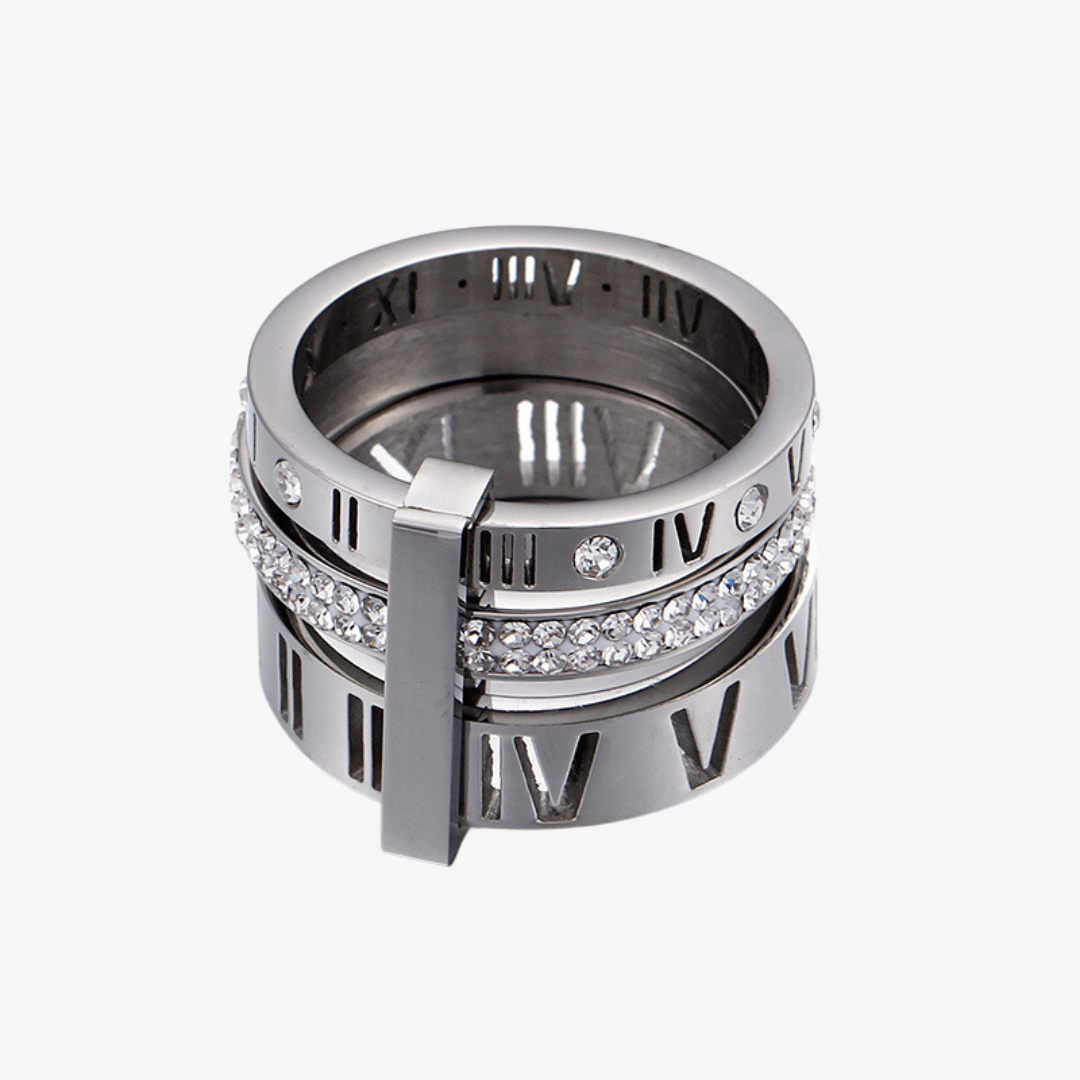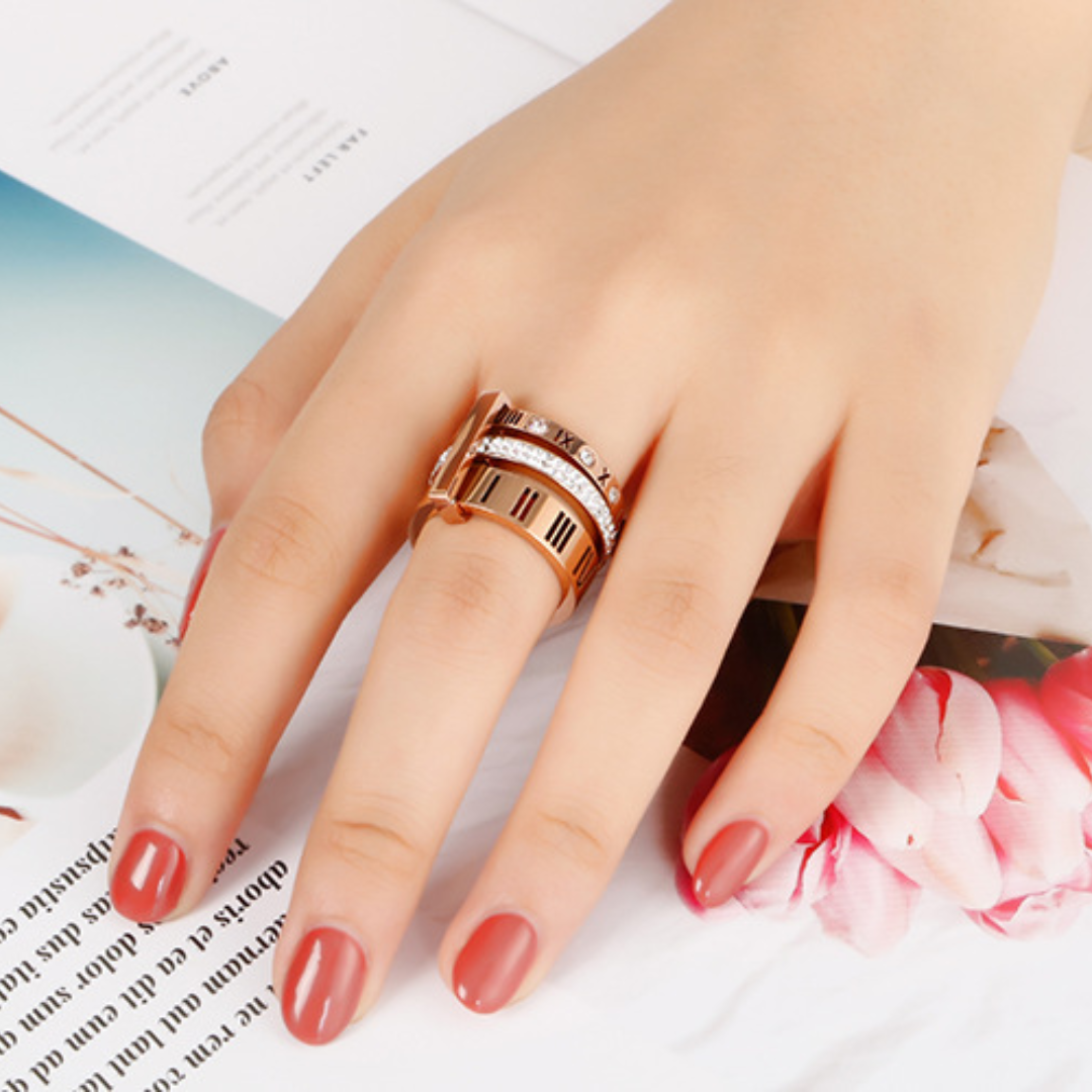 Elevate your style with our Triple Stack Ring. Crafted with metal bands adorned with roman numerals and a cubic zirconia layer, this classic Band Ring adds a touch of sophistication to any outfit. Layer up or wear solo for an exclusive and timeless look.