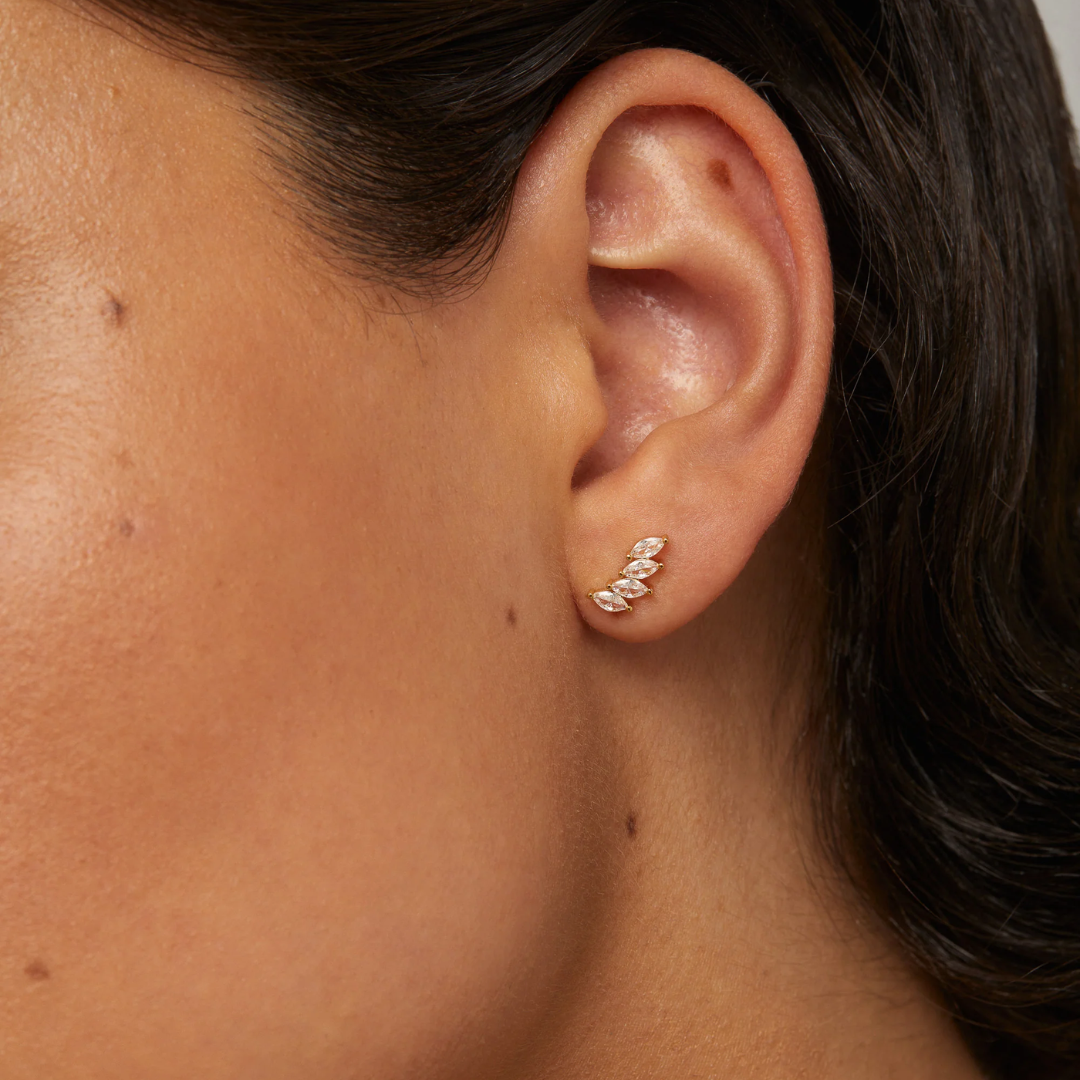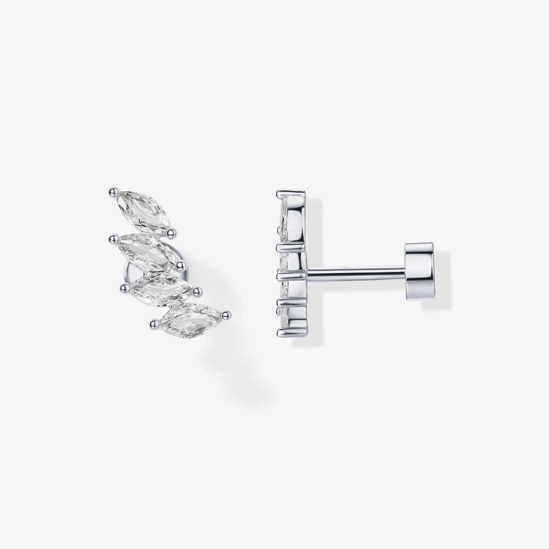 Enhance your look with our stunning flatback stud earrings, artfully designed with top-quality AAA Cubic Zirconia stones. These charming and delicate crawler studs are ideal for sophisticated women looking for both comfort and refinement. Whether worn on your cartilage or for everyday use, these screw-back earrings will exceed your expectations.