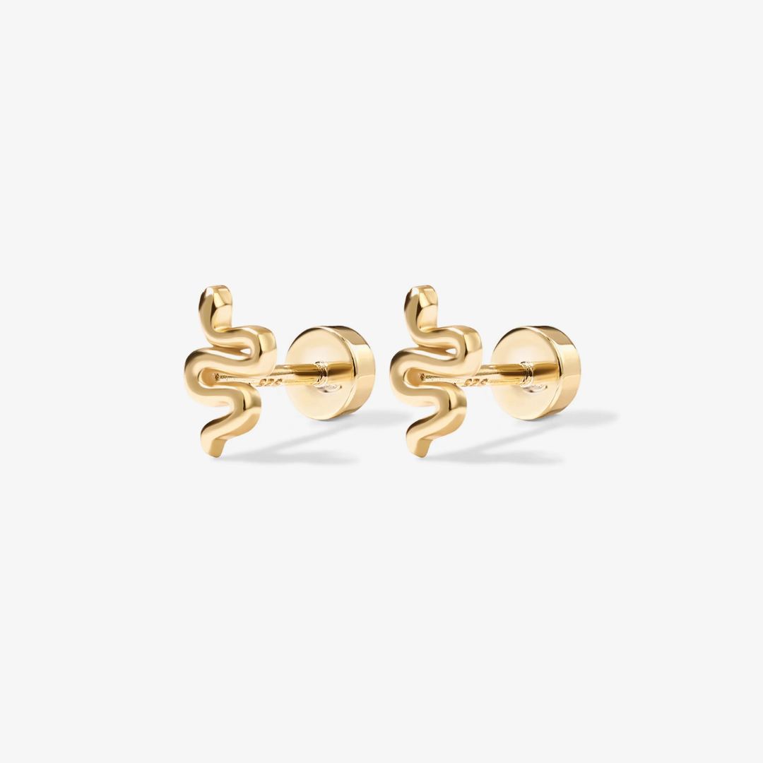 Elevate your style with our Snake Screw Back Studs. These Must-have earrings will take your look to the next level, whether worn solo or as part of an earring stack. With a secure screw back design, you'll look stunning even while you sleep. Exude elegance and luxury with these breathtaking Snake Flat Back Studs.