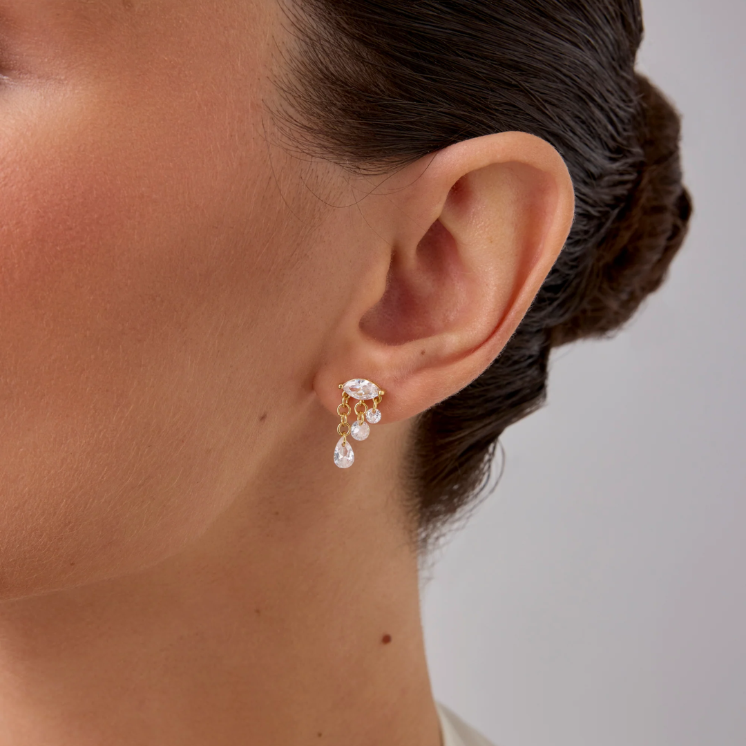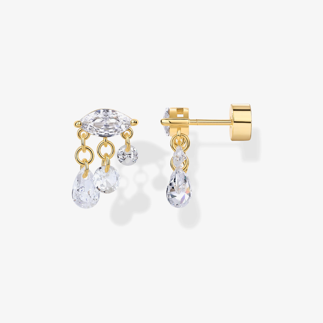 These elegant Crying Dangle Flat Back Studs feature marquise-cut cubic zirconia stones that delicately cascade like tears. Designed for sensitive souls, their refined sparkle adds a subtle yet expressive touch to any ensemble, allowing you to wear your emotions with grace and sophistication. Perfect for those who appreciate understated beauty with meaningful detail.