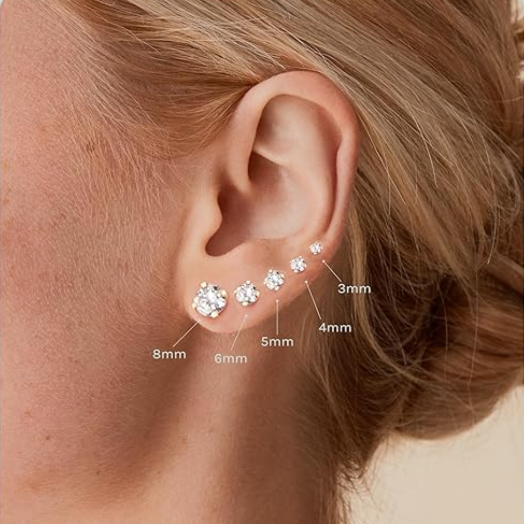 Elevate your ensemble with our exquisite 5 Pairs Stud Earring Pack. This refined collection features varying dimensions of cubic zirconia stones that brilliantly reflect light with every movement. The versatile assortment transitions seamlessly from daytime sophistication to evening allure, providing timeless elegance for your jewelry collection.