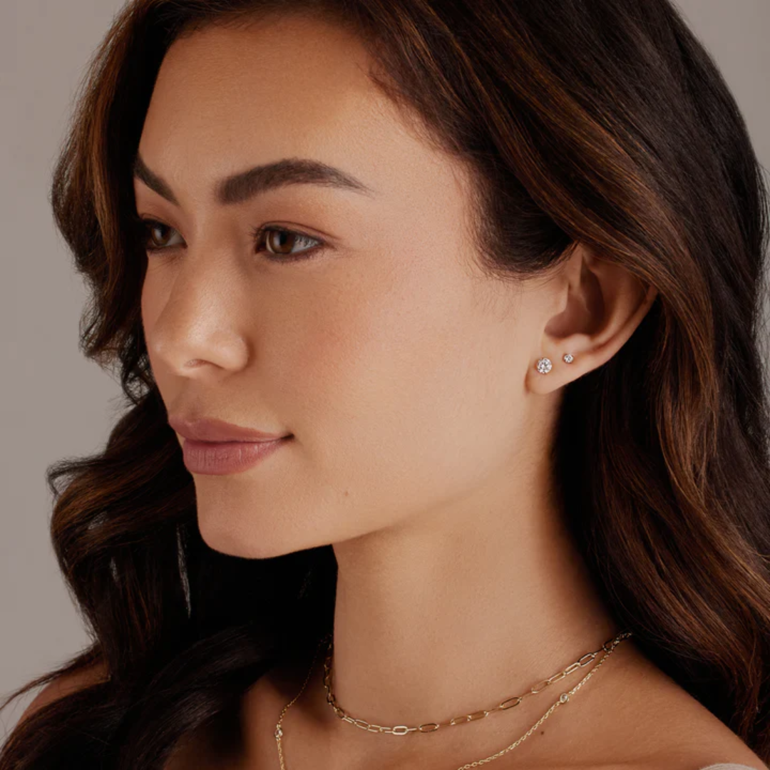 Our jewelry is made from high-quality stainless steel and finished with a luxurious layer of 14k or 18k gold or silver. This durable material resists tarnishing and fading, offering greater longevity than traditional gold, silver, or even platinum. It won’t discolor your skin and retains its brilliant shine over time.