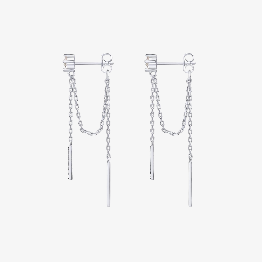Mini Cubic Zirconia Chained Bar Earrings