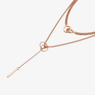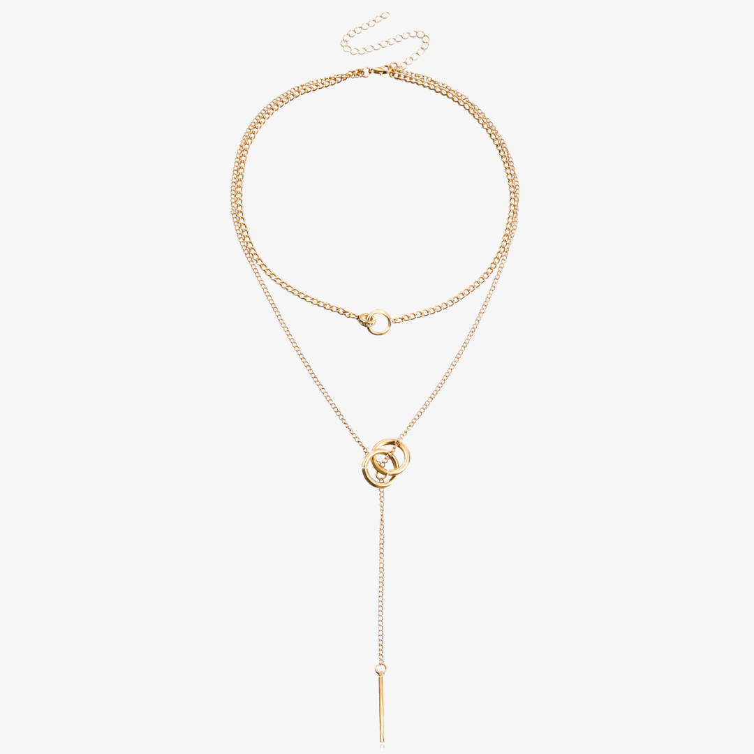 Indulge in luxury with the Valori Linked Rings Tassel Necklace. This exquisite piece features layered chains with linked rings, culminating in a chic vertical solid stick tassel. Elevate any outfit with this statement piece that exudes sophistication and exclusivity.